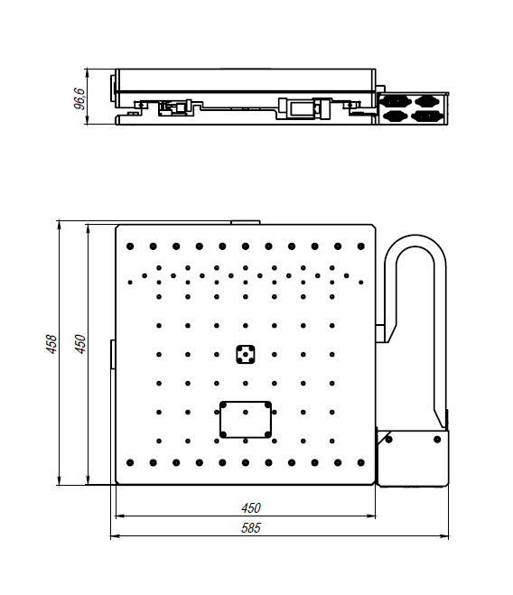 | Габаритные размеры оптического стола | 450х450 мм | |